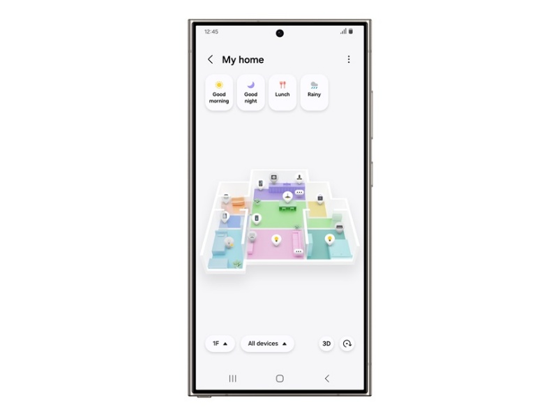 - De Ervaring (3D): Zodra je de kaart hebt gemaakt, kan SmartThings er een 3D-model van maken. Je voegt virtuele meubels toe (een bank, een TV, een plant). Op dat moment komt je huis tot leven. Dit ziet er vooral op tablets en Samsung TV’s spectaculair uit. Je ziet niet alleen een icoontje van een lamp; je ziet daadwerkelijk een virtuele gloed in de 3D-kamer als de lamp aan staat.